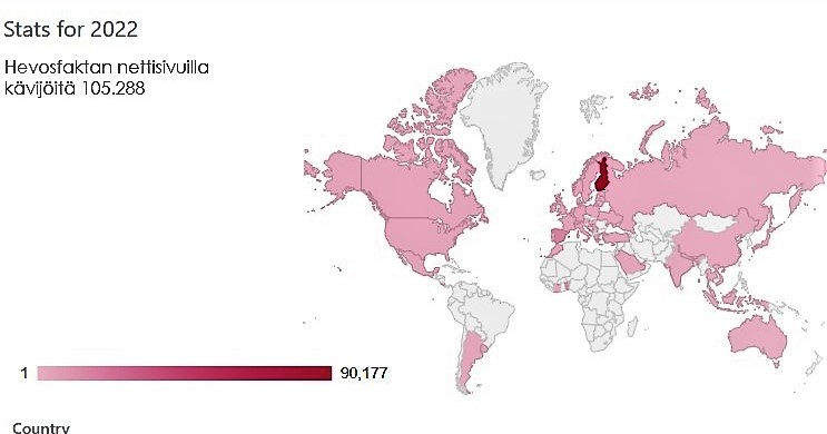Vuosi -22 oli Hevosfaktalle monessa mielessä merkityksellinen. Nettisivumme saavuttivat aivan uskomattoman suosion. Sivuilla käytiin 105.288 kertaa ja mikä oudointa seuraajia löytyi kirjaimellisesti ympäri maailmaa. Erikoisimmat kohteet olivat mm. Kiina (79), Vietnam (16), Argentiina (14) Armenia (3) sekä Nepal, Tago ja Saudi Arabia (1). ”Kymmenen kärjessä” olivat sen sijaan hieman tutummat maat. Todella ihmeellistä tämä nettimaailma. Mutta hyvä näin. Suurin kiinnostus kohdistui vuokra-asuntoihin ja ne olivatkin lähes 100 % vuokrattuina. Niklas siirtyi syksystä hoitamaan vuokratoimintaa ja siirto toimi loistavasti. Asiakkaat ovat olleet tyytyväisiä ja sehän on tietysti tärkeintä. Suurin ongelma vuokrapuolella on hyvien vuokra-asuntojen löytäminen. Kysyntä kun on tällä hetkellä tarjontaa selvästi suurempi.