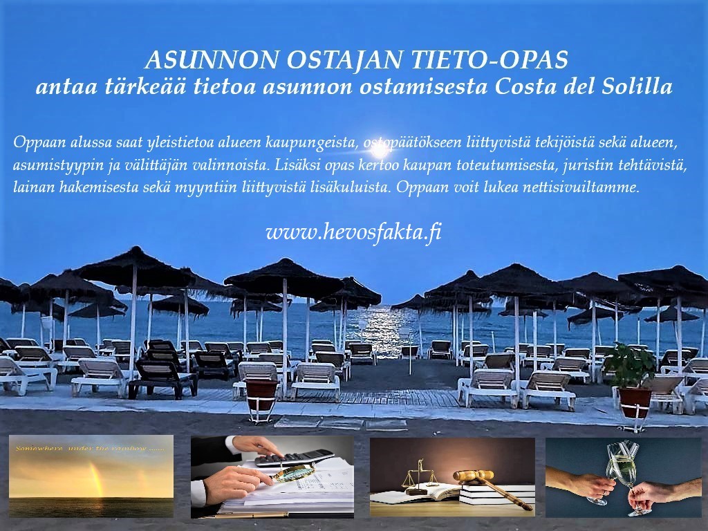Ostoasiakkaita varten julkaisimme nettisivuillemme Asunnon ostajan tieto-oppaan, josta saa neuvoa kaikkiin asunnon ostoon liittyviin asioihin. Osto-opasta kannattaa käydä lukemassa myös, jos on kiinnostunut Costa del Solin eri kaupungeista ja niissä olevista nähtävyyksistä eli opas toimii myös turistioppaana. Käy katsomassa nettisivuiltamme www.hevosfakta.fi uusimmat myyntikohteet ja kerro omista toiveistasi, jotta voimme hakea niihin mahdollisimman hyvin sopivan asunnon. Costa del Soliin kannattaa nyt panostaa!